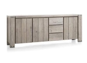 Ponieważ komoda wyposażona jest w trzy zamykane szafki oraz trzy szuflady, może pełnić funkcję pojemnej szafy. Oprócz tego idealnie nadaje się jako komoda pod telewizor. A co najważniejsze, będzie cieszyć oko pięknym wyglądem. Dzięki połączeniu nowoczesnego wzornictwa z tradycyjnym klimatem, komoda pasuje do niemal każdego wnętrza. W związku z tym odnajdzie się w każdej przestrzeni, zarówno w salonie, sypialni, jak również w pokoju dziecięcym. Widoczne słoje oraz sęki, nieregularna struktura drewna nadaje komodzie niepowtarzalnego wyglądu. Ponadto drewno użyte do produkcji komody to wyjątkowy naturalny produkt, starannie selekcjonowany oraz przetwarzany w tradycyjny sposób. Dlatego jest taka unikatowa oraz niepowtarzalna. Oprócz tego szlifowane i strugane drewno wiązowe w kolorze kamienia szarego wzmacnia naturalny charakter. Akcenty metalowe w kolorze antracytowym podkreślają nowoczesny styl komody. Komoda posiada system cichego domykania.